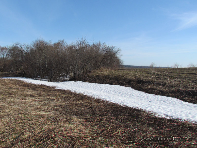<div class=ru><p>24.04.2011: В оврагах снега ещё много. Эта белая «полоса» — овраг глубиной ~1,5 м. Он заполнен снегом практически вровень с краями. Снег ещё настолько плотный, что я перешла по нему на другую сторону, не проваливаясь.</p></div><div class=en><p>Apr 24, 2011: There is a lot of snow in gullies yet. This white “row” is a gully ~1,5 m deep. It is all filled with snow so dense that I could go across it without sinking.<small>2011-04-fields</small></p></div><hr style=clear:both;>